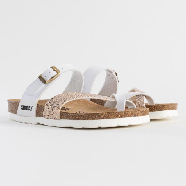 SUNBAY Sandales à Entre- doigts Femme | FEMME Sandales Tulipe à entre-doigts Blanc et python